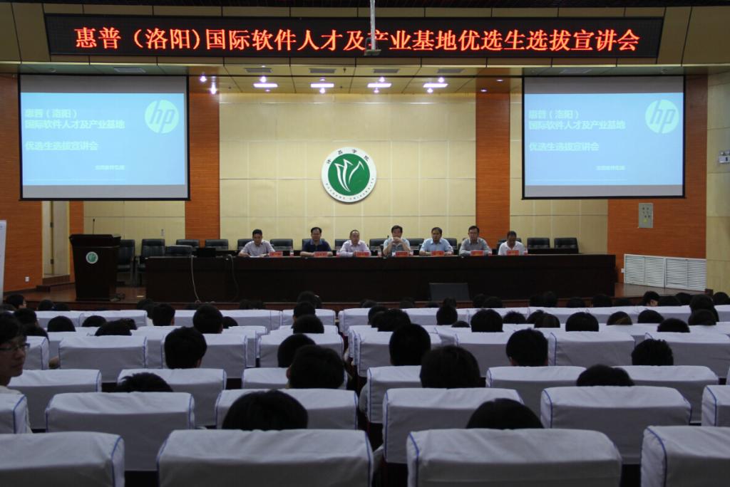 5月28日晚,m88 app在校学术报告厅召开惠普(洛阳)国际软件人才及产业基地优选生选拔宣讲会。惠普软件集团大中华区战略发展事业部高级研究员史森、惠普Master级咨询顾问刘宏伟、惠普软件集团大中华区战略发展事业部项目经理李一、我校m88 app领导班子出席会议,院部师生300余人参加了宣讲会,宣讲会由党总支副书记翟广辉主持。